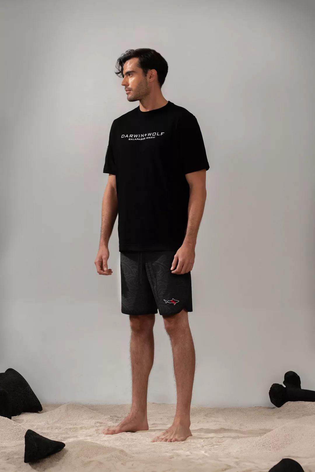 BAÑADOR OLAS Y TIBURONES NEGRO