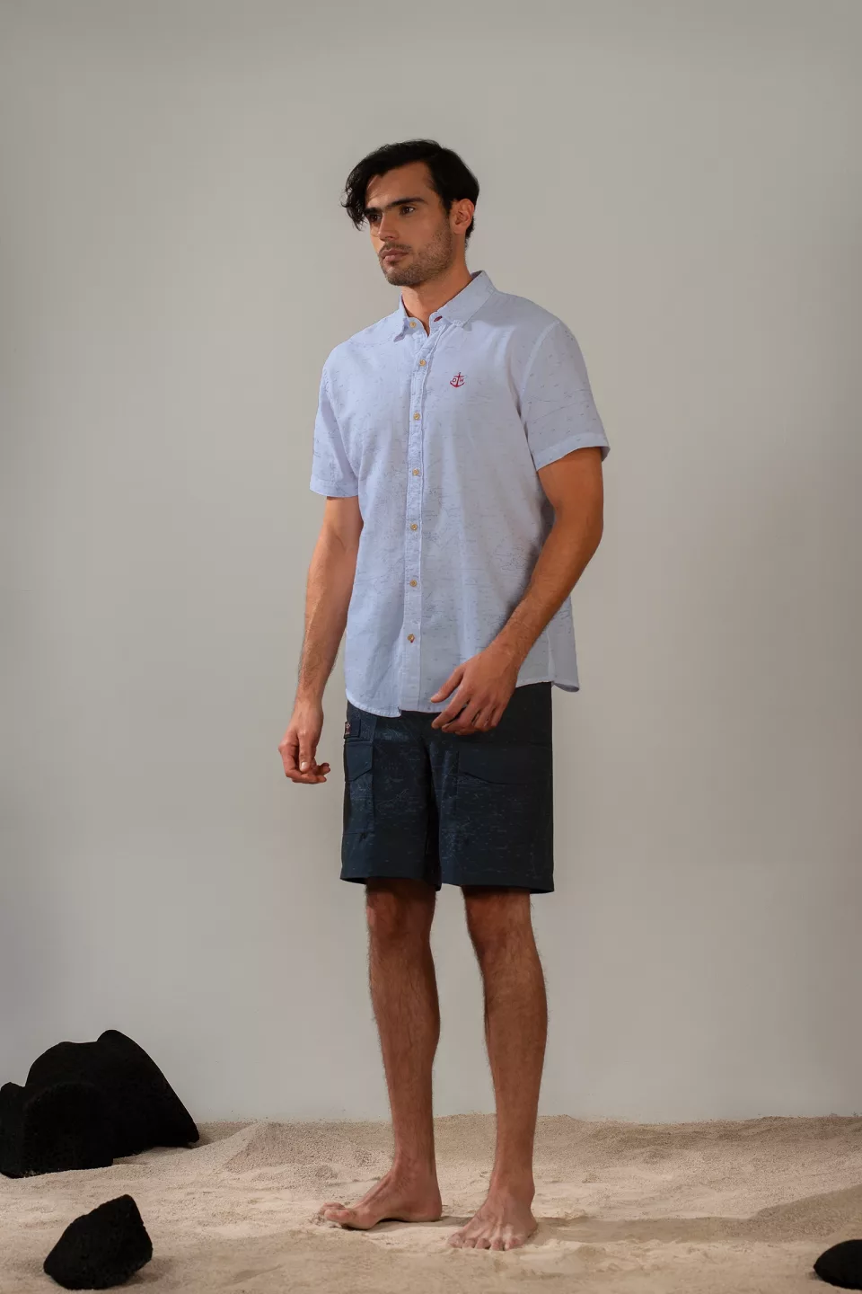 CAMISA MANGA CORTA DE LINO MAPA CELESTE