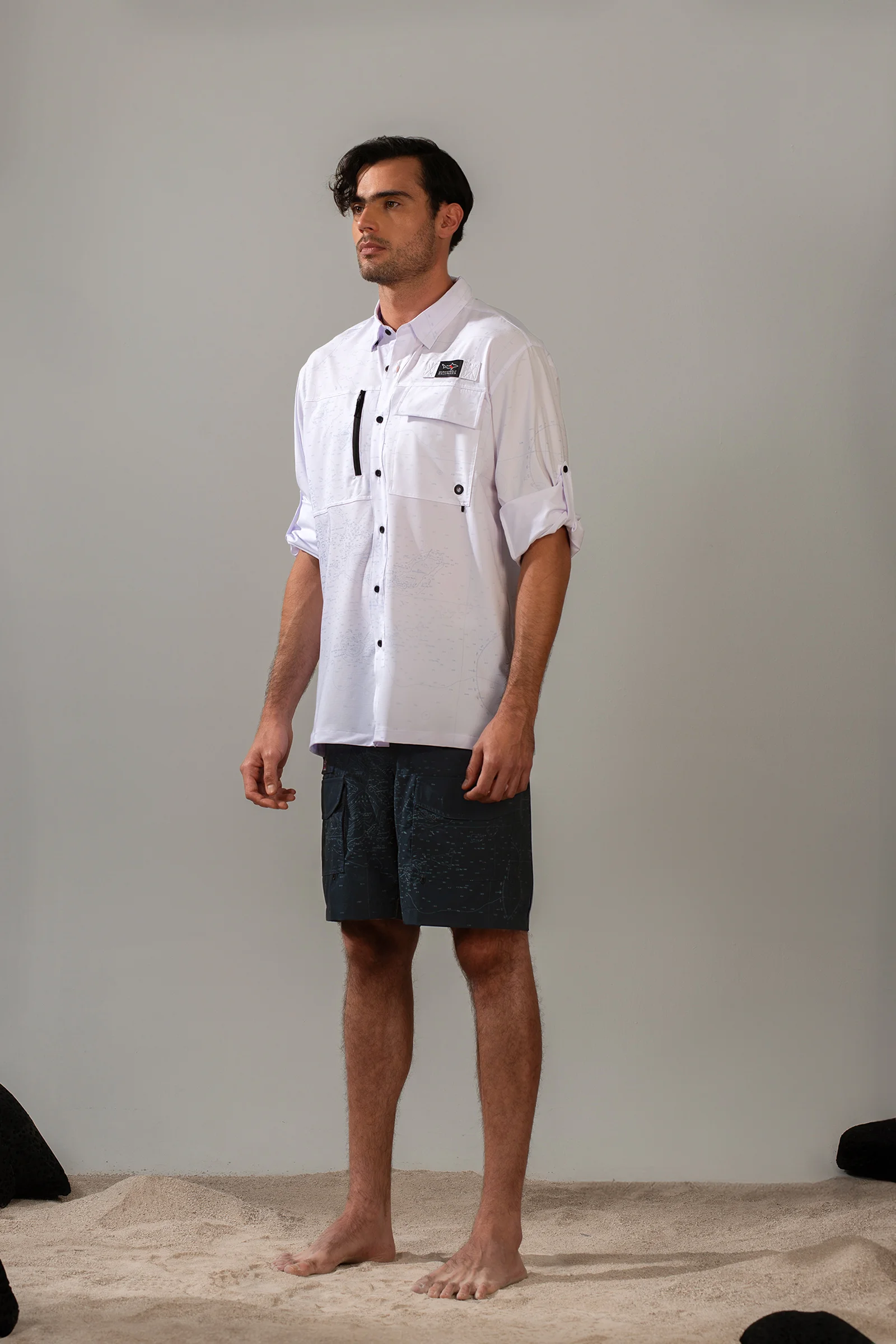 CAMISA TÉCNICA MANGA LARGA MAPA NAÚTICO BLANCO