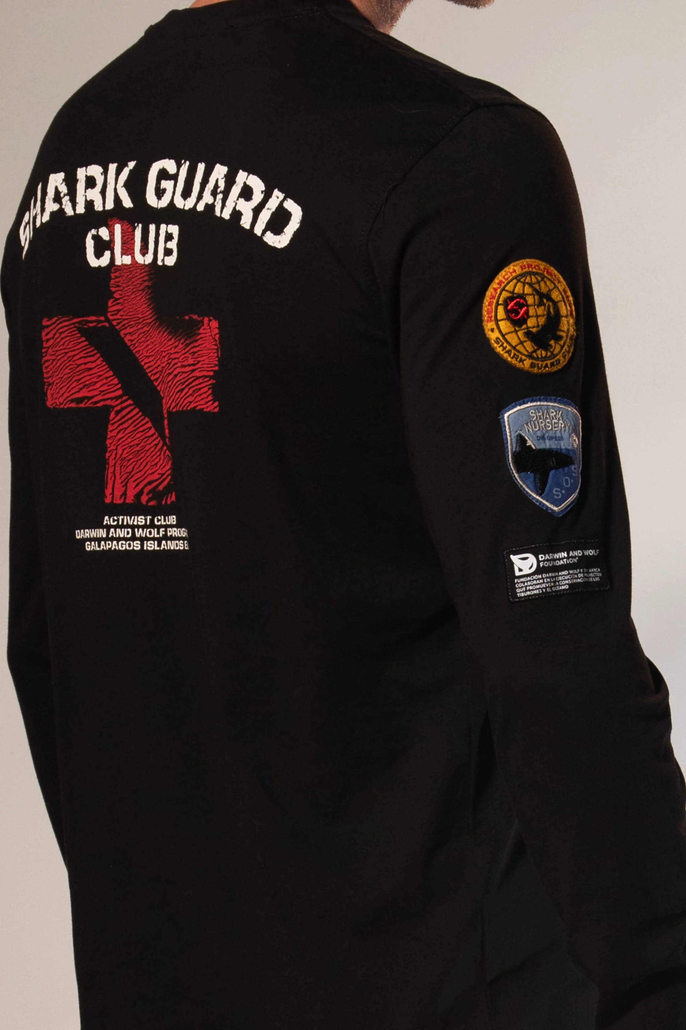 CAMISETA MANGA LARGA UNISEX GUARDIAN DE TIBURONES NEGRO