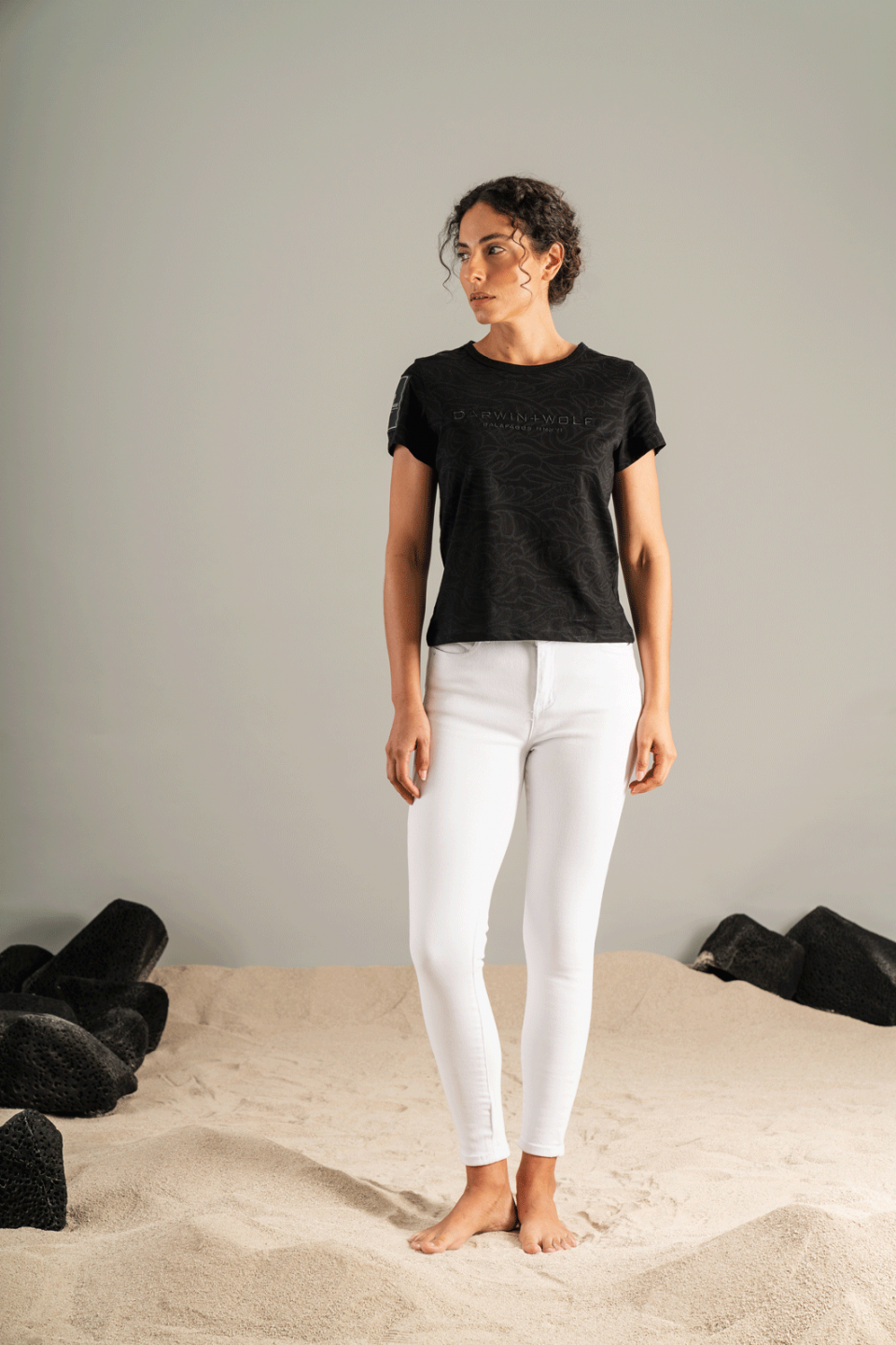 Su proceso de prelavado eficiente ayuda a optimizar el uso de agua, y asegura que tu prenda no cambie de tamaño, mientras sigas las instrucciones de lavado. El tejido ligero y transpirable asegura frescura durante todo el día, mientras que su diseño versátil la convierte en una elección adecuada para diversas ocasiones. Cada detalle de esta camiseta refleja nuestro compromiso con la calidad y una moda más responsable.