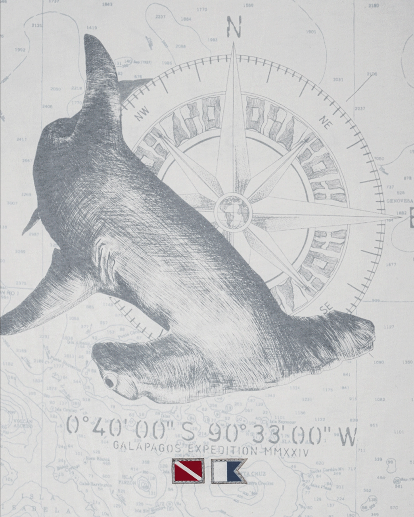 CAMISETA TIBURON MARTILLO BRÚJULA NACAR